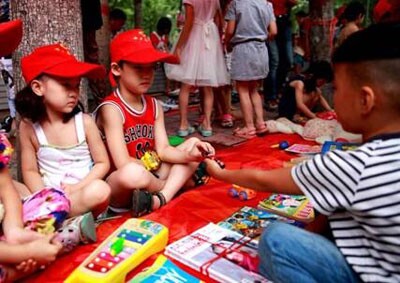 當(dāng)天上午不到九點(diǎn)鐘,活動(dòng)現(xiàn)場(chǎng)早已布置就緒,90多個(gè)取得“攤主”資格的孩子們精心布置著自己的攤位,把自己心愛(ài)的物品整齊有序地排列,小攤位上各種書(shū)籍、玩具、工藝品、文具等物品琳瑯滿目。九點(diǎn)鐘活動(dòng)正式開(kāi)始,孩子們?cè)诟鱾€(gè)攤位前流連,仔細(xì)挑選喜愛(ài)的物品,用自己帶來(lái)的東西“攤主”置換。“我很喜歡你的小手槍,我能拿這本《格林童話》的書(shū)換嗎?”“我用一支圓珠筆換到了三個(gè)筆記本呢!”……有的孩子為了“招攬生意”大聲吆喝著,還有的彼此自我介紹成了新朋友,忙的不亦樂(lè)乎,現(xiàn)場(chǎng)空前熱烈。許多家長(zhǎng)表示,這樣的活動(dòng)非常有意義,不僅讓孩子換得了新的玩具,還培養(yǎng)了勤儉節(jié)約的良好習(xí)慣,一舉兩得。