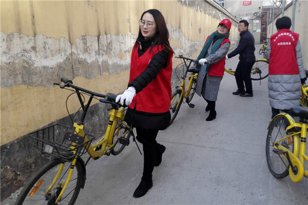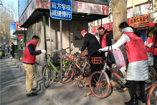志愿者們冒著寒風(fēng)和低溫,清理家屬院里違規(guī)停放小黃車(chē),并引導(dǎo)社區(qū)居民講文明、樹(shù)新風(fēng),養(yǎng)成良好的行為習(xí)慣。經(jīng)過(guò)一個(gè)多小時(shí)的勞動(dòng),雖然手都凍紅了,但看到近百輛擺放的整整齊齊的單車(chē)和井然有序的院子,大家都有滿滿的成就感,也體會(huì)到了奉獻(xiàn)的快樂(lè)。